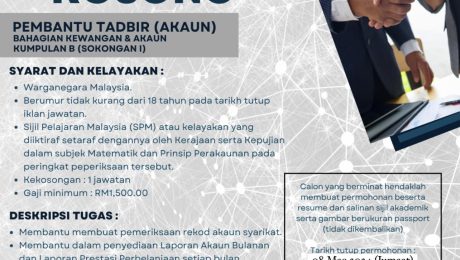 Berminat boleh hantarkan resume dan salinan sijil serta gambar berukuran passport ke emel: [email protected]