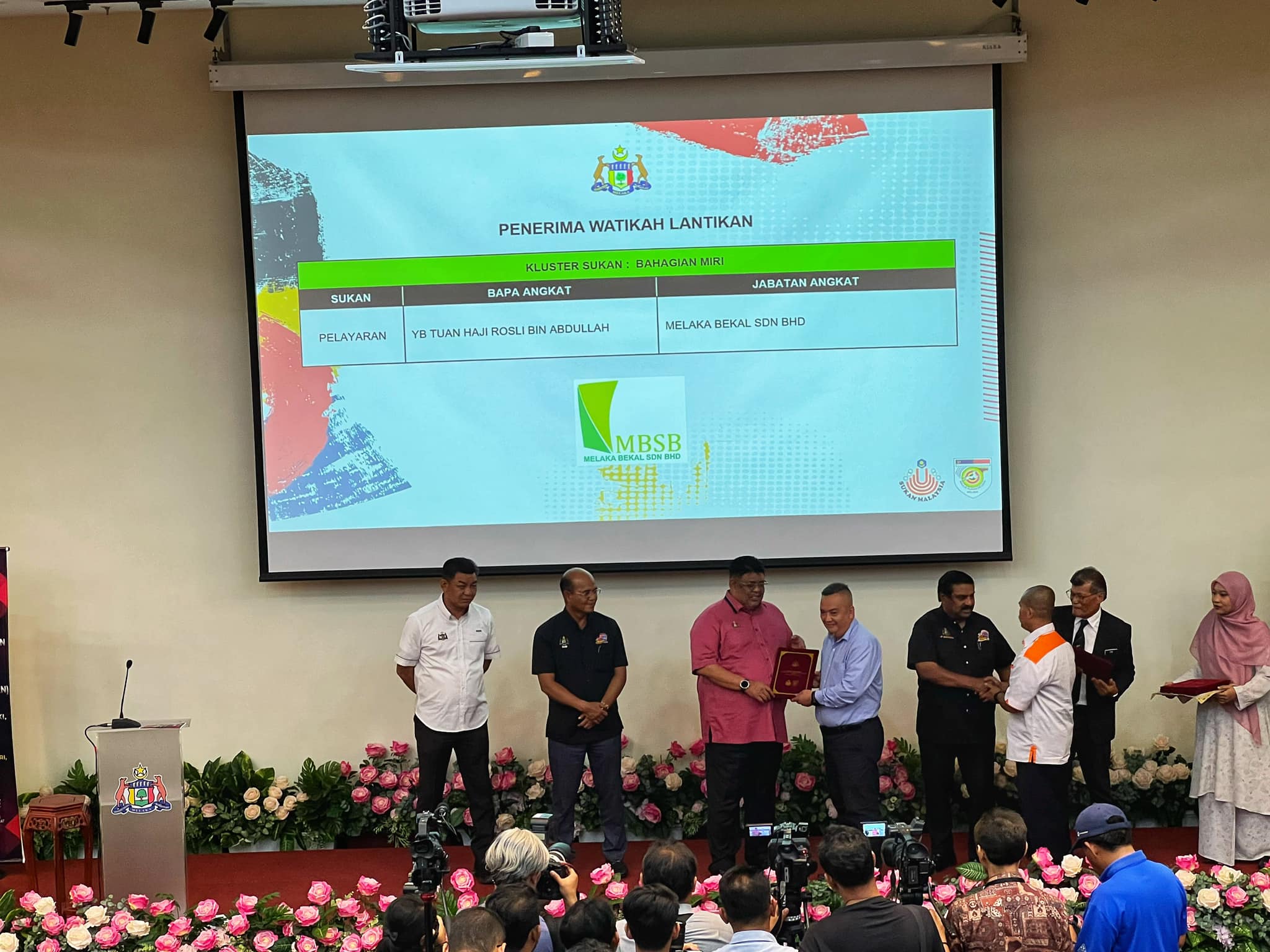 Majlis Penyerahan Pelantikan Watikah Bapa Angkat, Jabatan Angkat dan Anak Angkat (Sukan) telah disempurnakan oleh YAB Datuk Seri Utama Ab Rauf Yusoh, Ketua Menteri Melaka.