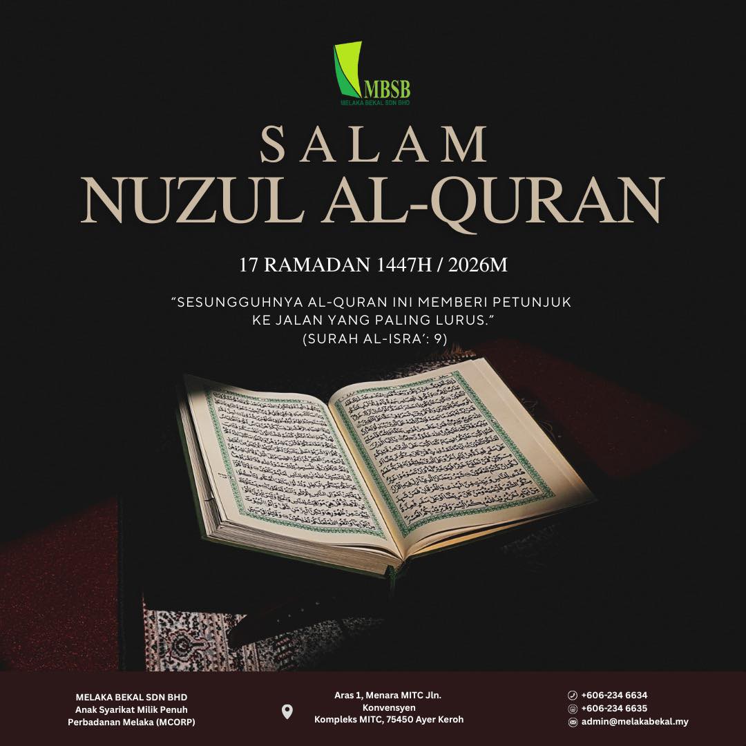 Pada 17 Ramadan ini, marilah kita menghayati peristiwa agung turunnya Al-Quran sebagai petunjuk dan panduan hidup umat Islam.